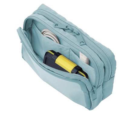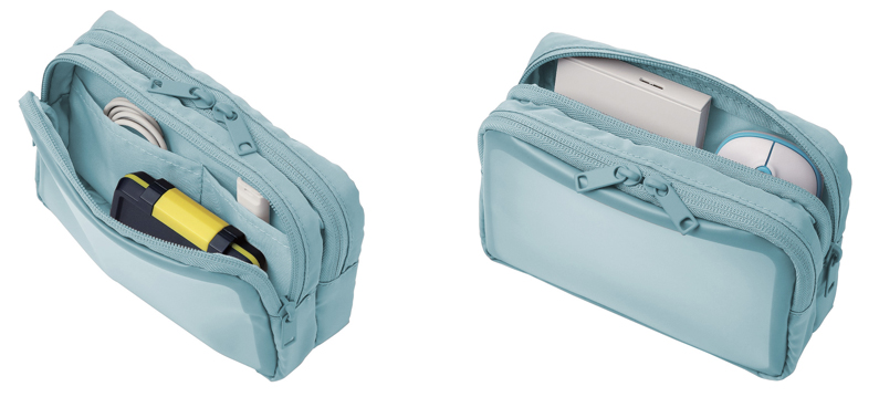 ガジェットをまとめて収納可能。ポーチの中身が透けて見える透明窓の気室をもった見えポケット付き、2気室のポーチです。