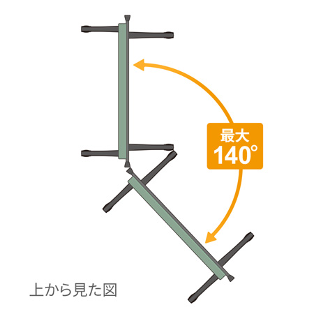 脚が本体の内側にあるので、最大140度まで角度をつけて配置できます。